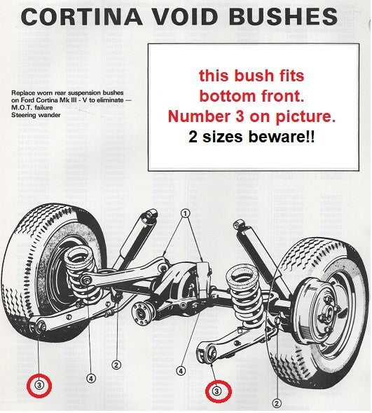 FORD CORTINA Mk3 (1970-76)NEW REAR AXLE, FRONT LOWER BUSHES(PAIR) 50mm Diameter